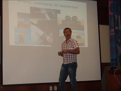 Den 30/9 hade Whisky Lassies besök från Stockholm och Johan Franco Cereceda, som guidade oss på en resa genom Spaniens södra delar och dess sherrytillverkning. Ett underhållande och mycket intressant föredrag där Johan berättade om historien tillverkningsmetoderna och skillnaderna mellan de olika sherrytyperna, betydelsen av jordmån m.m. Sorterna vi provade var: