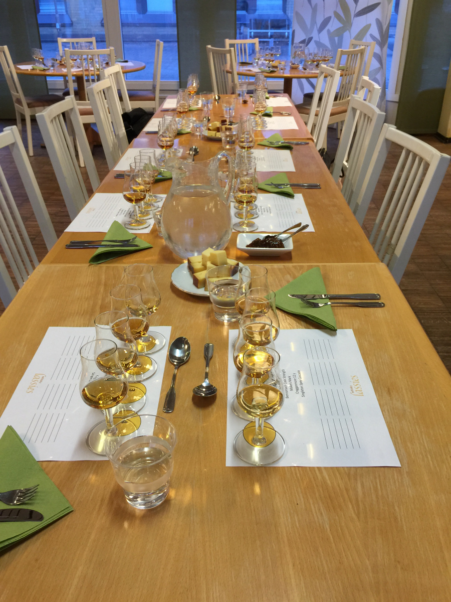 Vi hade nöjet att åter igen bjuda in Janne Groth, som arbetar som whiskyambassadör och har ett stor intresse och kunskap om kombinationen whisky och mat, till vår förening för att testa våra smaker under en whiskymiddag. Janne guidade oss igenom middagen med en säker hand på ett underhållande och trevligt sätt. Under kvällen delade vi även ut utmärkelsen Årets Whisky Lassie 2014 som i år gick till AnnCi Östedt som i många år har skött/sköter och uppdaterat vår hemsida på ett utmärkt sätt. Vi började den här spännande kvällen med en förwhisky och provade Benromach cask strength, 60 %, 12 år tillsammans med en bit ost (Norins selection). Vi var nog överens, de flesta av oss, om att det var en utmärkt kombination.