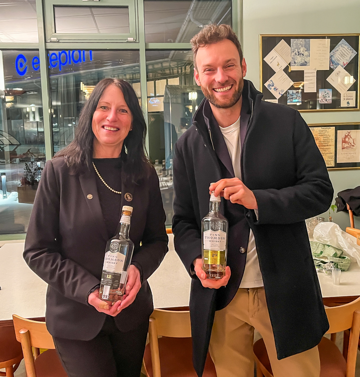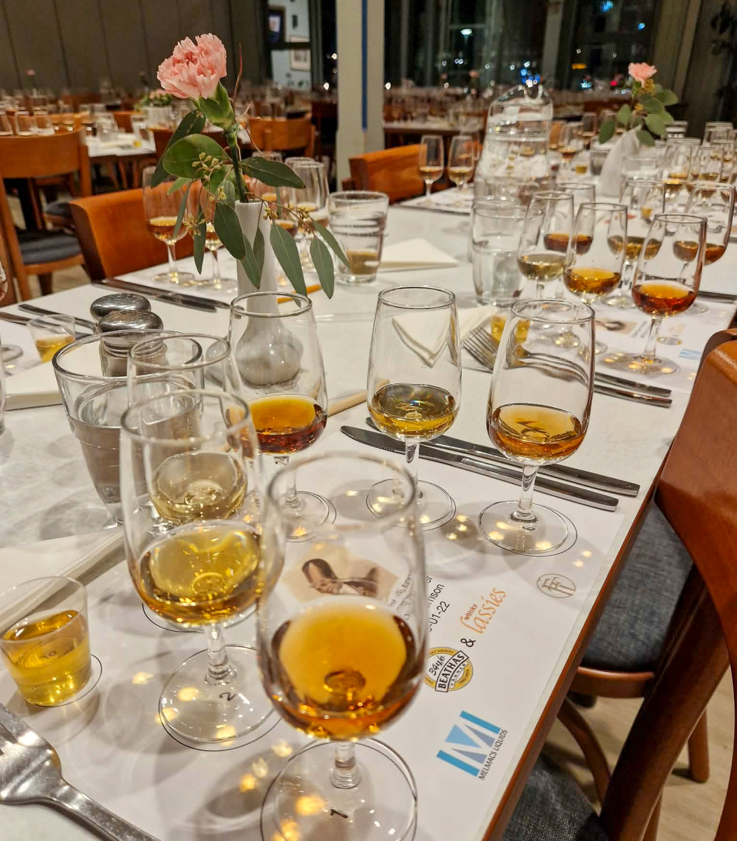 Sedan blev det dags för whiskyprovning med med Finn Thomson och Carina Mian från Melmacs Liquids som ciceroner. Vi fick avnjuta sex whisky från Finn Thomson Private Cask collection och höra om Finn Thomsons historia. Dessa var de whiskys vi fick prova: